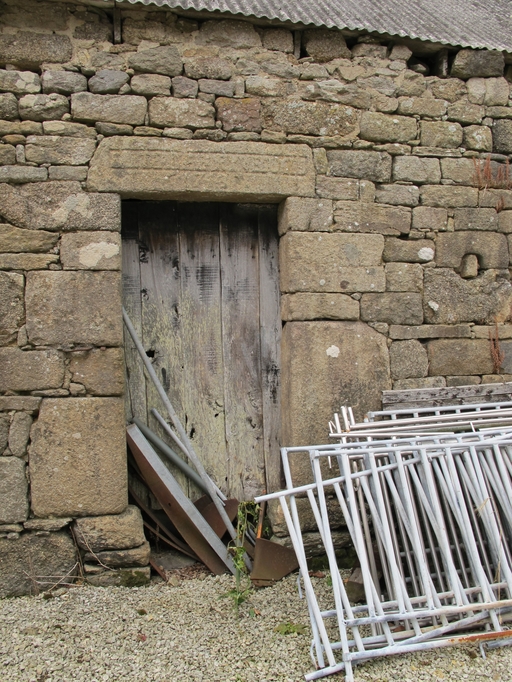 Elévation antérieure orientée vers le sud-ouest, détail de la porte à linteau droit. L'édifice porte le millésime "1745" et l'inscription suivante : "FAIP_A_EAR YVES OGES"Immatriculation