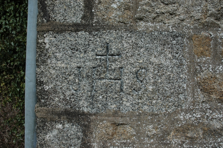 Logis, élévation orientée vers le sud, chaîne d'angle en granite, monogramme du ChristImmatriculation