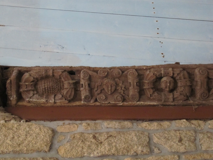 Plougras, le bourg : chapelle Saint-Gonéry, sablière sculptéeImmatriculation