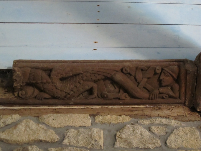 Plougras, le bourg : chapelle Saint-Gonéry, sablière sculptéeImmatriculation