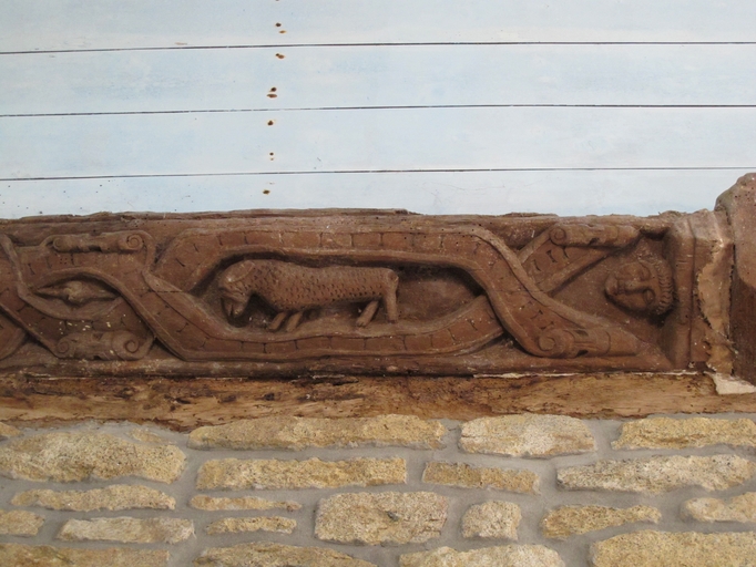 Plougras, le bourg : chapelle Saint-Gonéry, sablière sculptéeImmatriculation