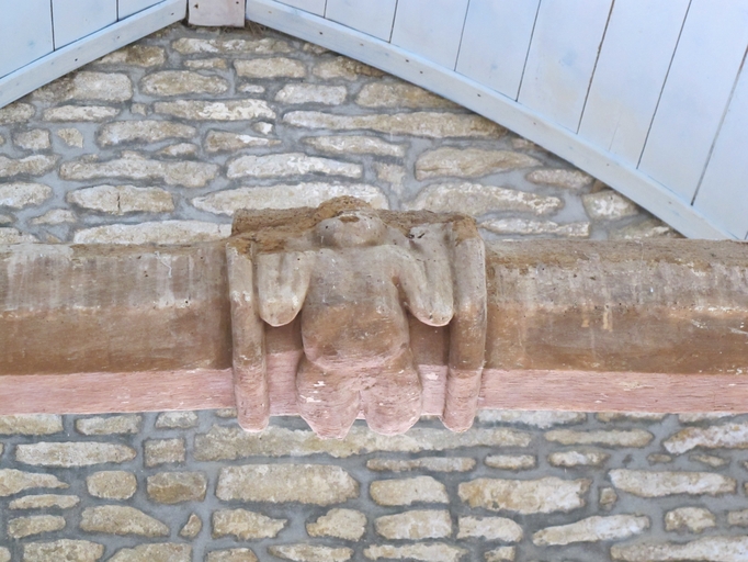 Plougras, le bourg : chapelle Saint-Gonéry, détail de l'entrait sculpté figurant un angelotImmatriculation