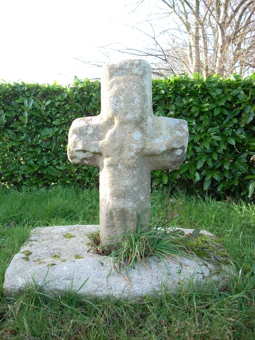 Plougras, le Solier : ensemble de deux croix de chemin. Christ en croix figuré en bas reliefImmatriculation