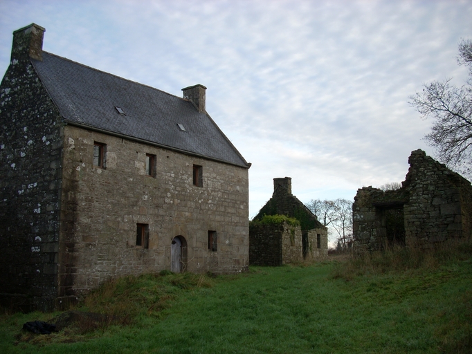 Plougras, Pen an Nec'h : ferme. Logis secondaire à l´est, de plan rectangulaire construit en moellon et pierre de taille de granite, avec remploi d´éléments anciens, avec porte encadrée de deux fenêtresImmatriculation