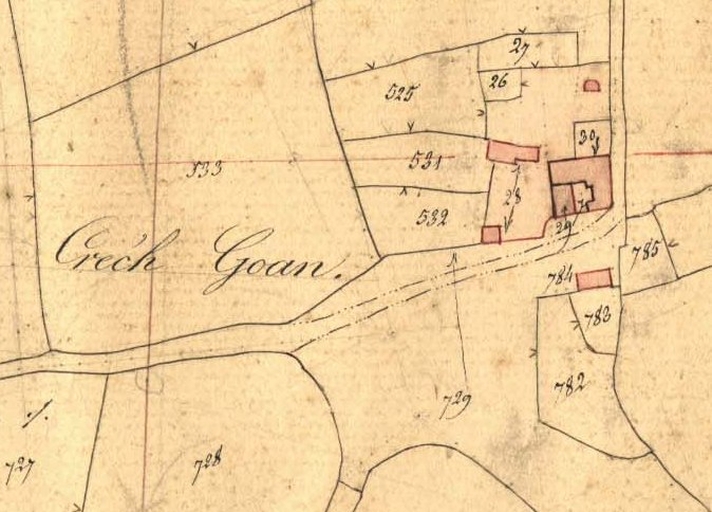 Extrait du cadastre ancien de la commune de Plougras, 1834 : la ferme de Crec'h GoanImmatriculation