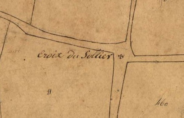 Extrait du cadastre ancien de la commune de Plougras, 1834 : l'ensemble de deux croix de SolierImmatriculation