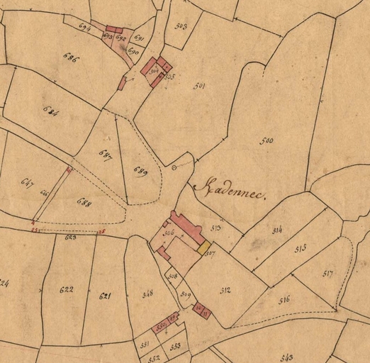 Extrait du cadastre ancien de la commune de Plougras, 1834 : le manoir de KerradenecImmatriculation