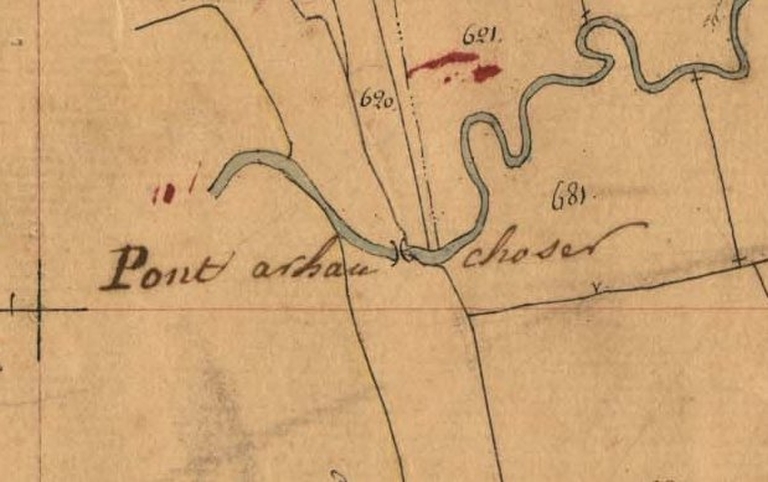 Extrait du cadastre ancien de la commune de Plougras, 1834 : situation du pont de LesplouzImmatriculation