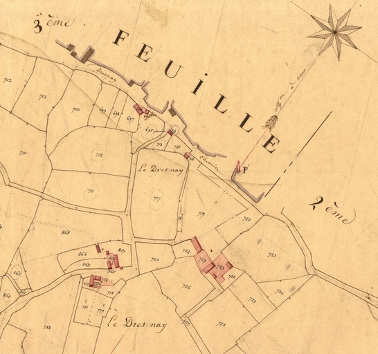 Extrait du cadastre ancien de la commune de Loguivy-Plougras, 1834 : le DresnayImmatriculation