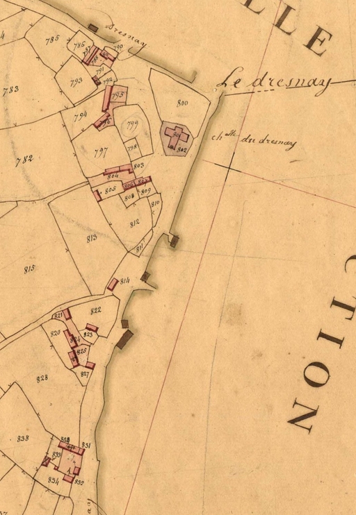 Extrait du cadastre ancien de la commune de Loguivy-Plougras, 1834 : le DresnayImmatriculation