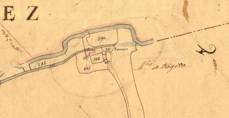 Extrait du cadastre ancien de la commune de Loguivy-Plougras, 1834 : moulin de TrogorreImmatriculation