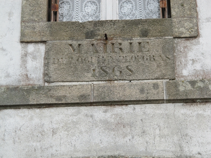 Loguivy-Plougras, le bourg : plaque de l'école des garcons et de la mairieImmatriculation
