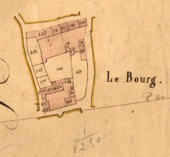 Extrait du cadastre de 1833, section, Le Bourg, parcelles 249 à 257, 266Immatriculation