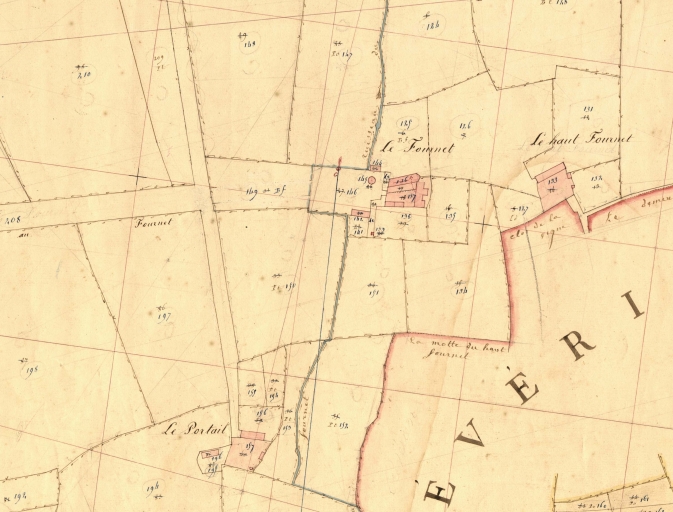 Extrait du cadastre de 1844, situation du château du Fournet et de la métairie du PortailImmatriculation