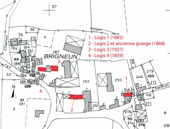 Localisation des éléments bâtis repérés (fond : cadastre de 1993)Immatriculation