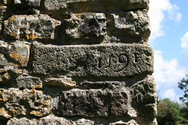 Ancienne ferme 1, logis, détail de la pierre datée remployéeImmatriculation