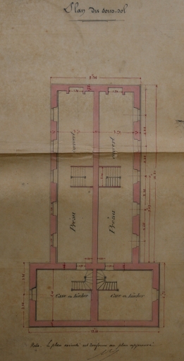 Plans et élévations, par l´architecte A. Marie, 1885. Détail de la planche : plan du sous-sol (A.D. Finistère, 2 O 333)Immatriculation