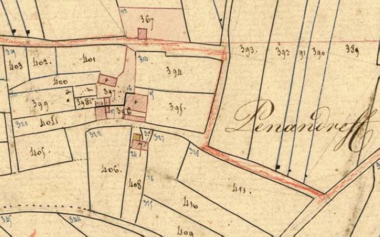Penandreff en 1830. Extrait du cadastre ancien, section 27 (A. D. Finistère, 3 P 45)Immatriculation