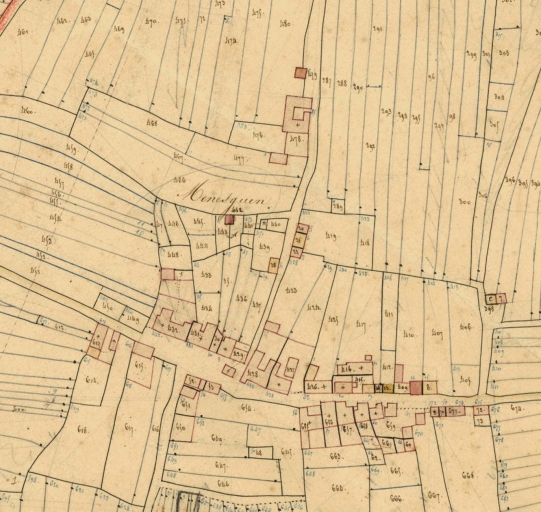 Le hameau de Ménesguen en 1830. Extrait du cadastre ancien, section 40 (A.D. Finistère 3P 45)Immatriculation