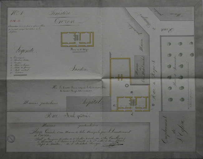 Plan d'une maison de police municipale à l'angle de la rue Poulpatré et de l'actuelle rue Anne de Mesmeur, 1813 (A.D. Finistère, série 2 0)Immatriculation