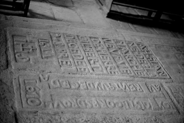Pierres tombales, sol de la nef.Immatriculation
