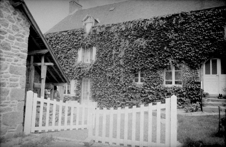 Le Rocher Avrillon, façade d'une ferme.Immatriculation