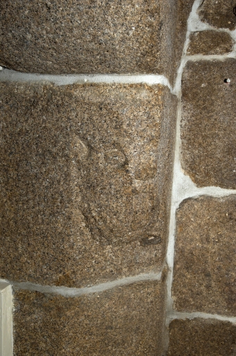 Visage sculpté sous le corbeau de la cheminée de la salleImmatriculation