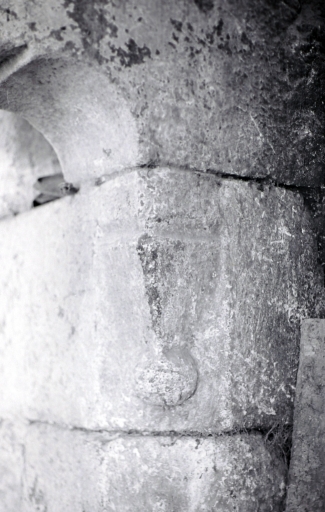 Décor sculpté, haut du piédroit gauche, cheminée du rez-de-chaussée.Immatriculation