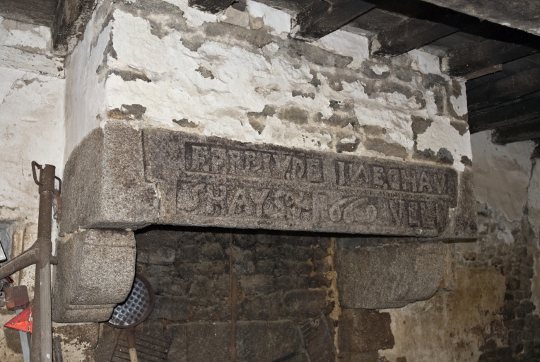 Détail du linteau de la cheminée de la dépendance.Immatriculation