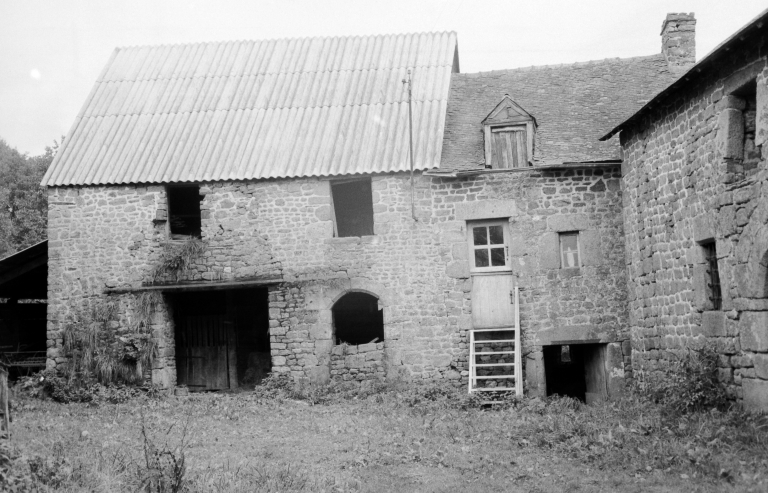 Alignement de deux logis (aujourd'hui détruit) : une maison remaniée avec une porte à arc surbaissé à demi-murée et une maison avec ouvertures modifiées, rez-de-chaussée sur sous-sol tenant lieu de bouverie.Immatriculation