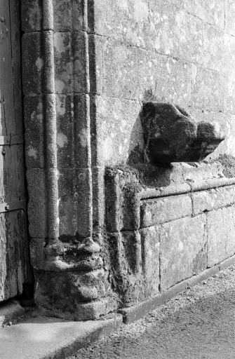 Porche sud, détail des moulures et de la plinthe.Immatriculation