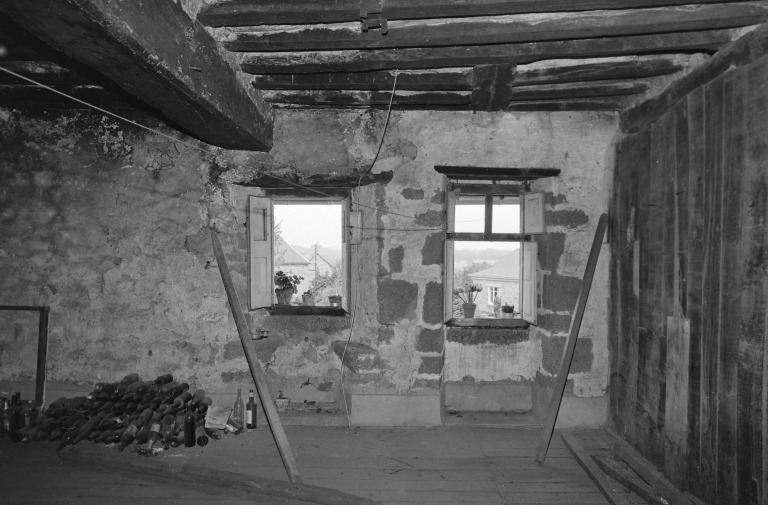Bourg, maison 17e siècle, ouvertures de l'étage.Immatriculation