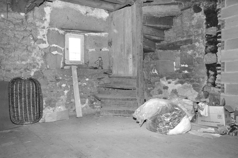 Escalier à vis en bois, premier étage, angle sud-est.Immatriculation
