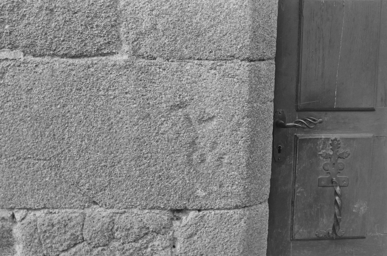Marque de tâcheron, porte plein cintre de la façade sud.Immatriculation