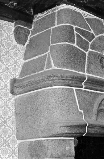 Logis ouest, cheminée du rez-de-chaussée, détail.Immatriculation