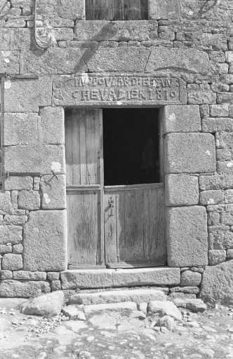 L'Epinay, maison 5, datée 1810, détail du linteau de porte, façade sud.Immatriculation