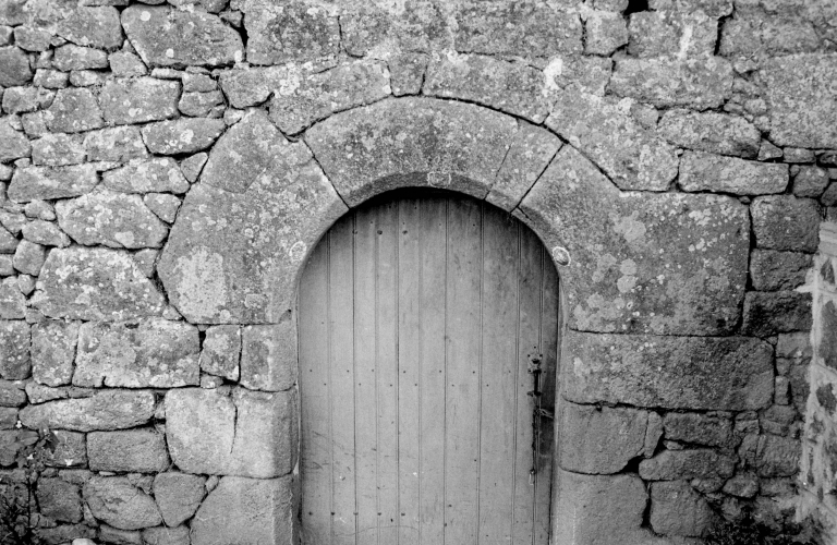 Porte en plein cintre décorée de 3 boulesImmatriculation