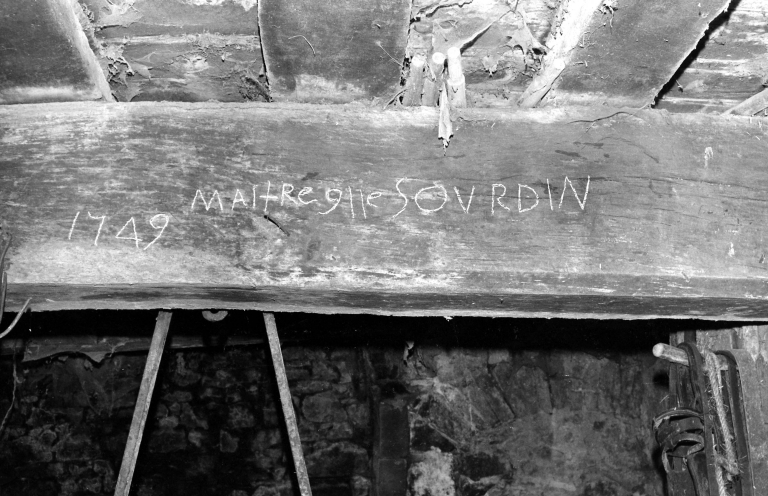 La Croslais, ferme, poutre gravée.Immatriculation