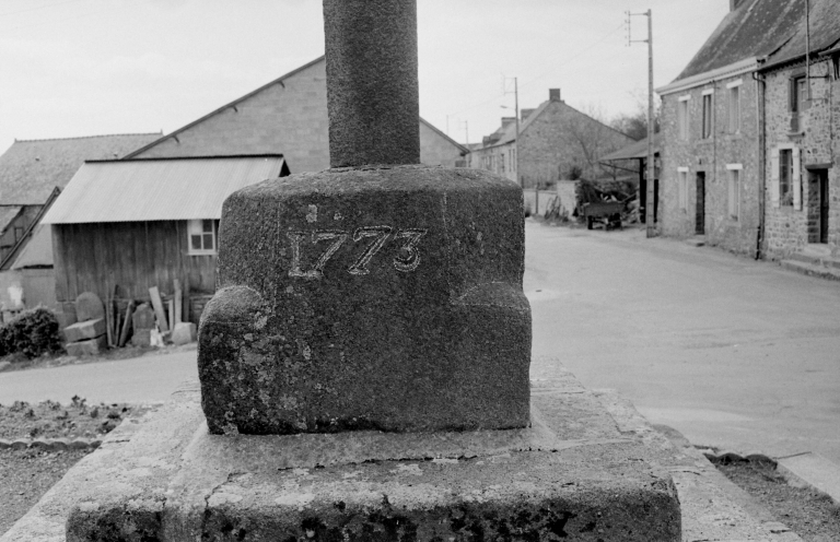 Bourg, socle de l'ancienne croix de cimetière.Immatriculation