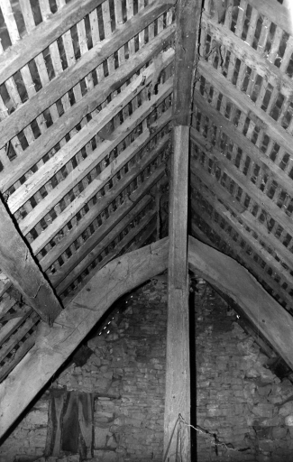Courbaud, ferme, détail de la charpente.Immatriculation