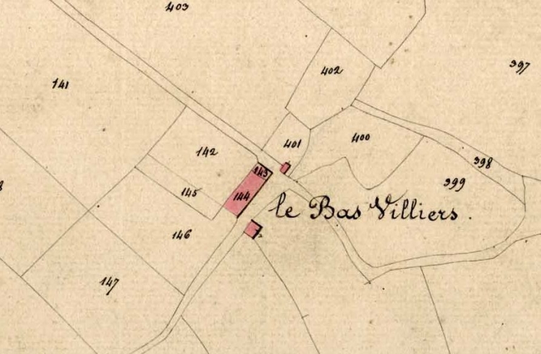 Le Bas Villiers sur le cadastre de 1833Immatriculation