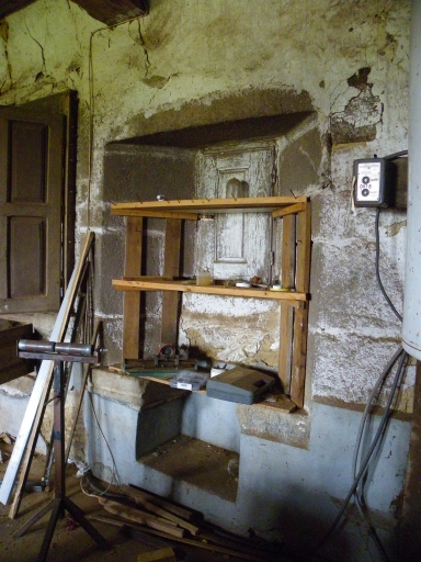 Le Grand Teil, maison, vue d'une fenêtre à coussièges.Immatriculation