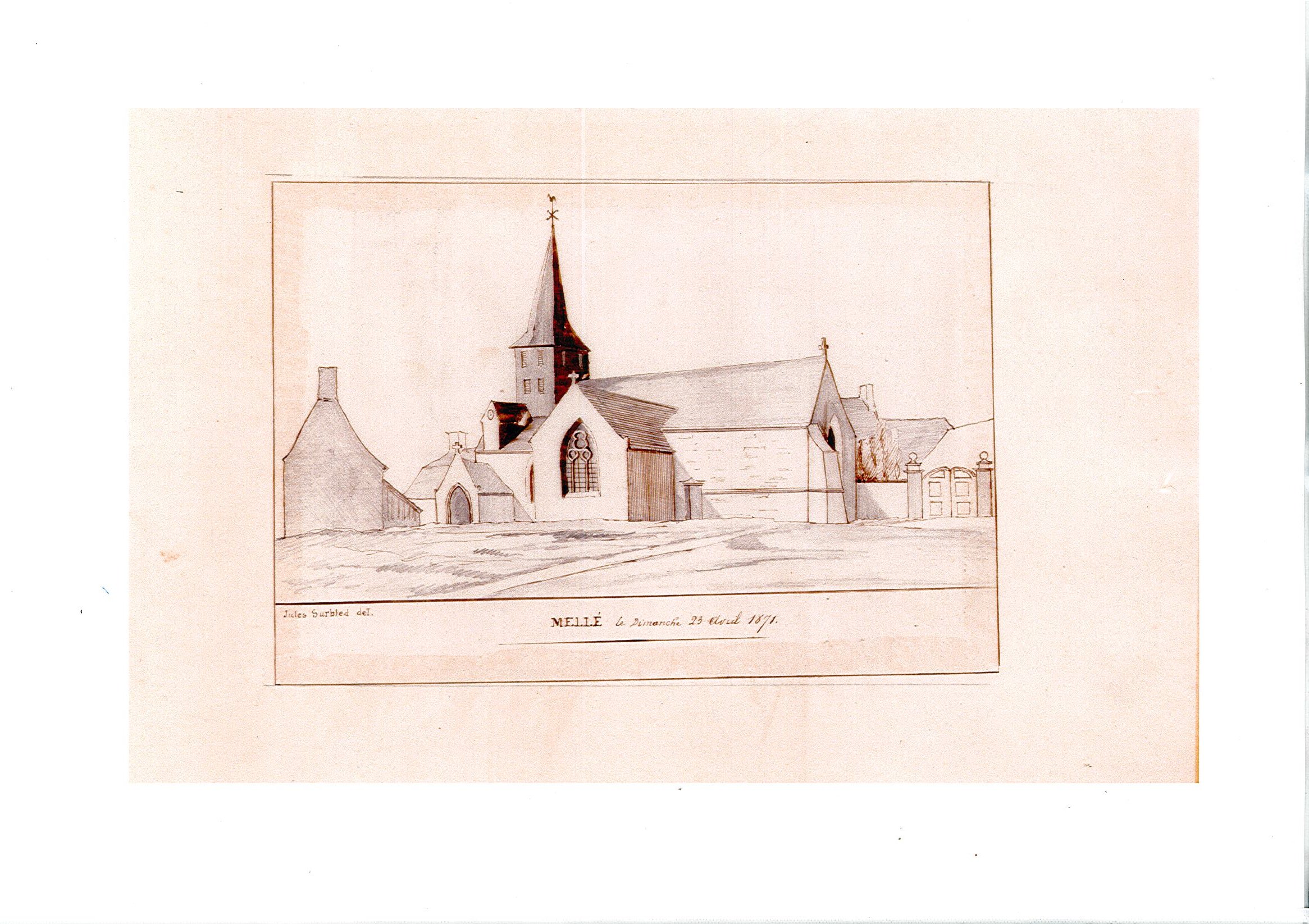 Dessin de 1871 de Jules SURBLED - église de MelléImmatriculation