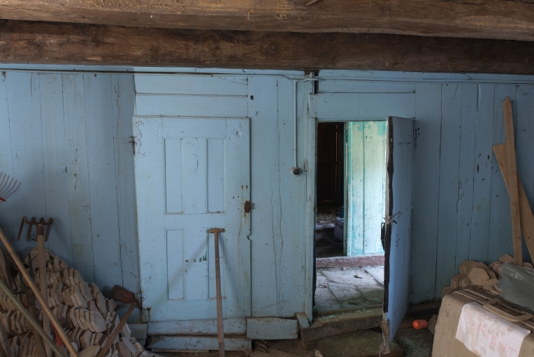 Second logis, cloison séparant la pièce ouest du couloir médian, porte d'accès à l'escalierImmatriculation