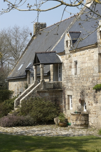 Façade sud : escalier couvert et puits encastré.Immatriculation