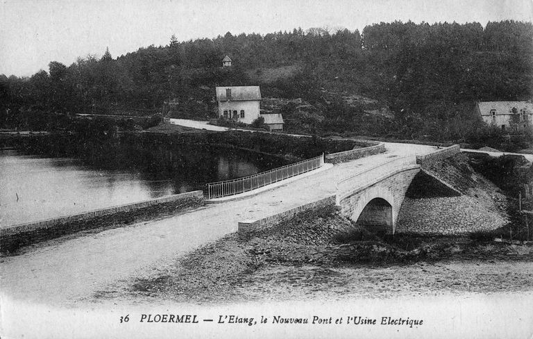 PLOËRMEL - L'étang, le Nouveau Pont et l'Usine Electrique. Carte postale, [s. l. ; s. n. ; limite 19e-20e siècles].