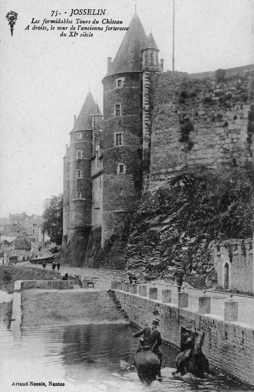 JOSSELIN - Les formidables tours du château. À droite, le mur de l'ancienne forteresse du XIe siècle. Carte postale, Nantes : Artaud-Nozais, édit., [1er quart 20e siècle].