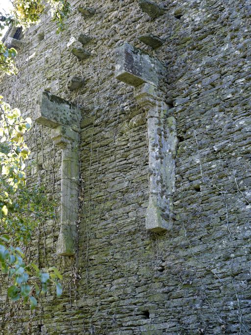 Manoir, logis principal, pignon nord : vestiges de la cheminée du 1er étage (état en 2010)Immatriculation