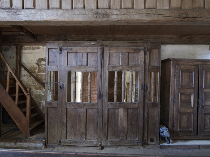 Vers l'ouest, porte et escalier menant à la tribune portant la date de 1708Immatriculation