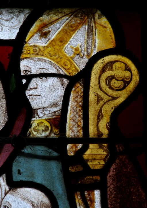 Verrière de la baie 2, lancette droite : saint Nicolas (état en 2010)Immatriculation